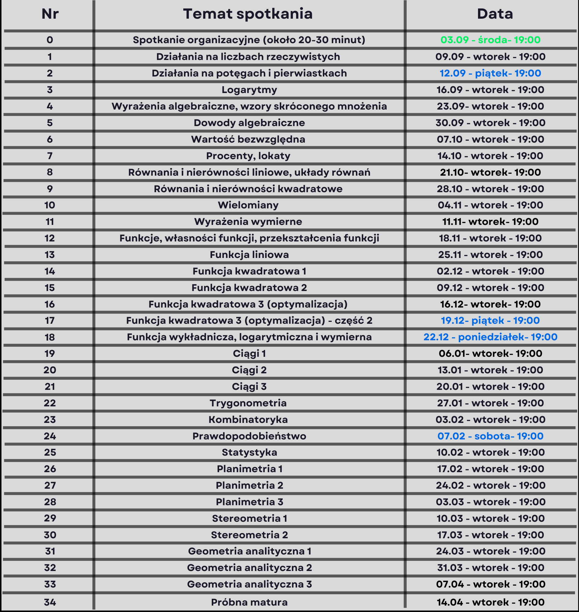 Zajęcia całoroczne kończymy około miesiąc przed maturami – na ten czas dostaniecie ode mnie 8 próbnych matur.